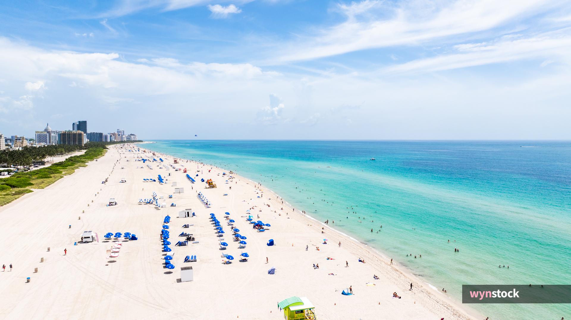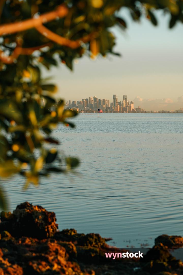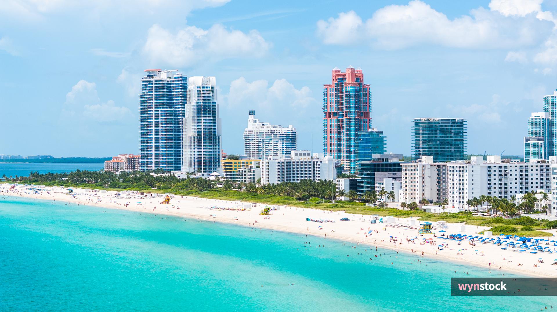 Try: golden hour aerial · art deco architecture · palm trees beach · sunset biscayne bay